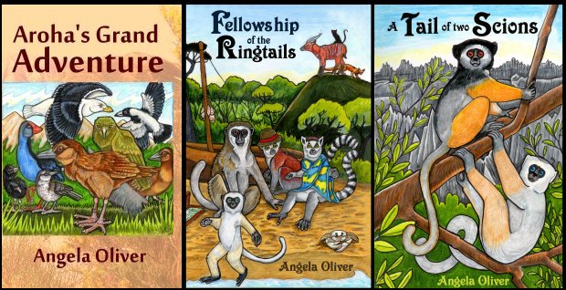 Currently she has independently published two novels, Aroha’s Grand Adventure: the adventures of a weka (that’s a flightless New Zealand bird) as she walks home from Christchurch to Greymouth, making many new friends and a few fiends along the way, as well as dealing with natural (and unnatural) disasters; and the first in her “epic lemur saga”, Fellowship of the Ringtails. Set in an alternate-world Madagascar, where the sentient lifeforms are lemurs, with stone-age technology, it is the story of Aurelia, the illegitimate heir to the throne. Raised by a humble fishing tribe, pursued by vicious hunters, she seeks sanctuary with the enigmatic Karazana lemurs, but will she find them in time? The second in the series will hopefully be released next year (2017), all things going to plan (as long as the characters co-operate).